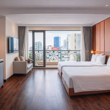 Our Deluxe Triple room is designed to accommodate groups or families with style and sophistication. Offering a large room with a window, this exclusive space provides a comfortable double bed and an additional single bed, ensuring a restful stay for all guests. Revel in the harmonious blend of ample space, captivating views, and superb comfort.