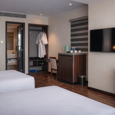 Combining comfort and versatility, our Superior Triple room is designed to accommodate three individuals without compromising on quality. With one double bed and one twin bed, this spacious room ensures a memorable stay for families or groups. Enjoy the same features as the Superior Twin, including a serene ambiance and ample space.