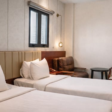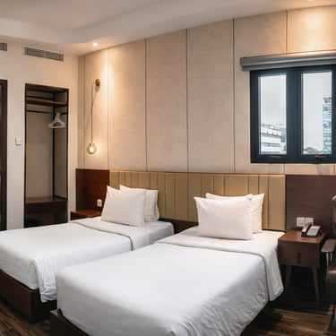 Indulge in spaciousness and comfort with our Superior Twin room. Designed for utmost relaxation, this large room features two single beds, allowing guests to unwind and rest peacefully. While the absence of a window ensures tranquility, the room's thoughtful layout guarantees a pleasant experience.